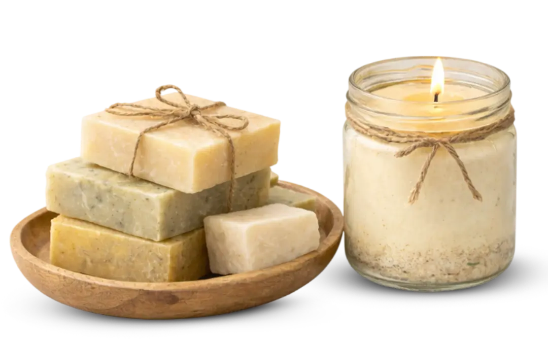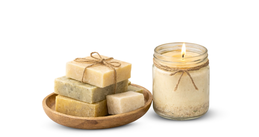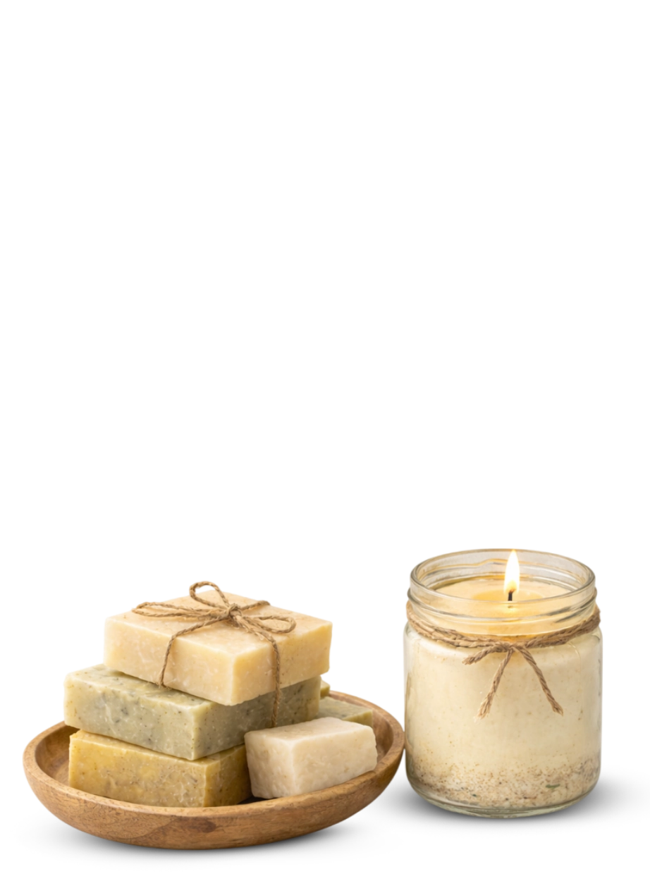 Crafted with natural ingredients like olive oil, coconut oil, soy wax, beeswax, and essential oils, our handcrafted soaps and candles are designed to bring gentle care, relaxation, and everyday wellness to your home and lifestyle.